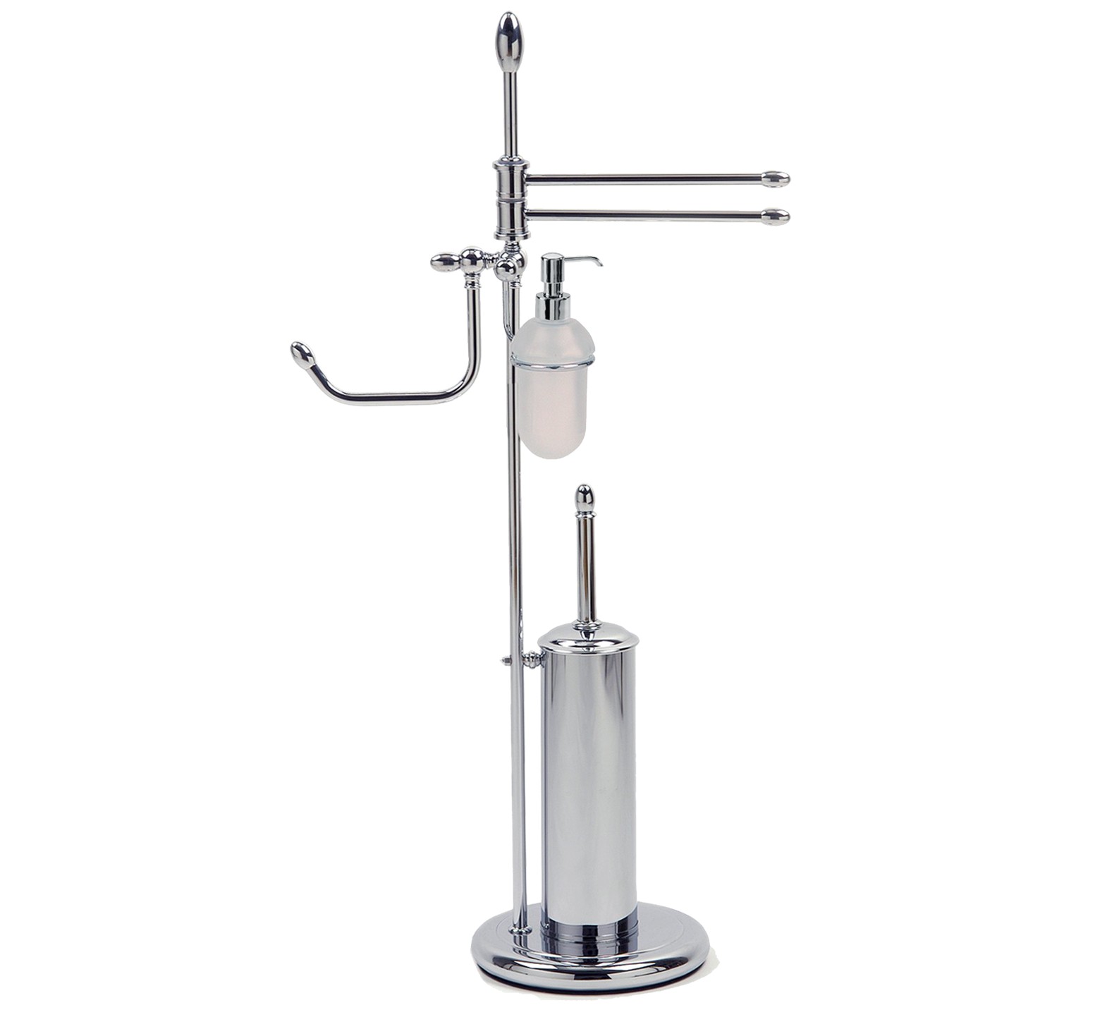 Piantana porta scopino e rotolo, porta dispencer e salviette bidet a 2 aste in ottone