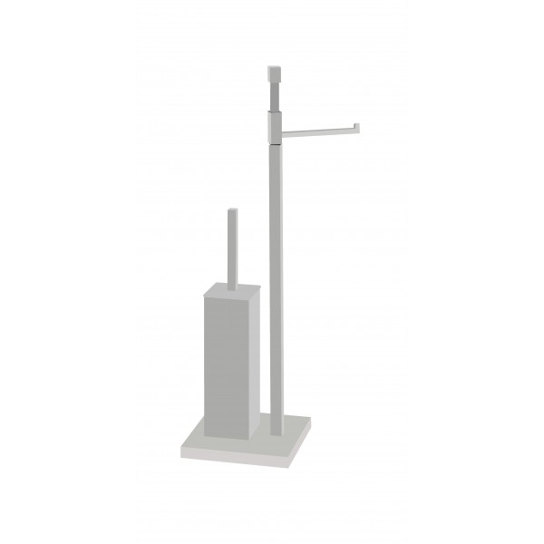 Piantana porta scopino e porta rotolo completamente realizzata in ottone trattato. Tubo interno al porta scopino in plastica, estraibile lavabile ed igienico. Il ciuffo in setola interno allo scopino è svitabile e sostituibile.
